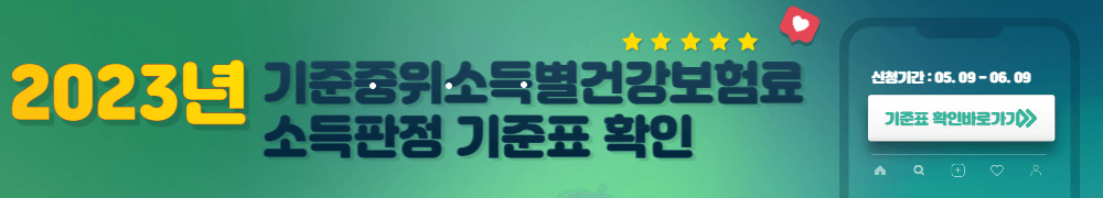 (신청인이 속한 가구의 건강보험료 고지금액 ('23년 4월분)이 '23년 건강보험료 소득 판정기준표상 기준 중위 소득 150%의 건강보험료 본인 부담금 이하여야 함)